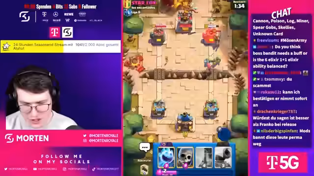 00:02:25Es wird zum ersten Mal die Boss Bandit im Stream gespielt, wobei die Karte auf dem Death Account noch nie zuvor ausprobiert wurde. Es wird diskutiert, ob die Karte gut ist und wie sie im Vergleich zu anderen Karten abschneidet. Die anfängliche Unsicherheit über die Spielweise und die Effektivität der Karte wird thematisiert, insbesondere im Hinblick auf die hohen Elixierkosten von sechs Einheiten. Verschiedene Spielsituationen werden analysiert, um die optimale Nutzung der Fähigkeit der Boss Bandit zu verstehen, einschließlich der Frage, wann und wie oft die Fähigkeit gezündet werden kann, um maximalen Schaden zu verursachen. Es wird auch überlegt, in welchen Decktypen die Boss Bandit am besten eingesetzt werden könnte, beispielsweise in Bridge-Spam-Decks, und wie sie sich gegen andere Karten wie den Royal Giant schlägt. Die ersten Spiele zeigen, dass die Karte möglicherweise stärker ist als erwartet, was zu Überlegungen über mögliche Nerfs führt.