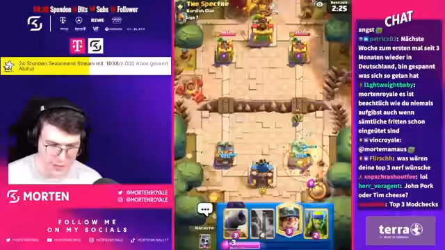 00:09:17Es treten technische Probleme mit dem iPad auf, das während des Streams leer läuft, was zu einem kurzzeitigen Wechsel zum Handy führt. Trotz dieser Schwierigkeiten wird der Fokus auf das Spiel beibehalten, und es wird über die Vorbereitung auf die Top 3-Platzierung gesprochen. Die technischen Pannen werden humorvoll kommentiert, wobei der Streamer sich selbst als schlechten Streamer bezeichnet, weil er die Geräte nicht rechtzeitig aufgeladen hat. Es wird betont, dass trotz der technischen Probleme der Stream weitergeht und das Ziel, die Top 3 zu erreichen, weiterhin verfolgt wird. Die Community wird aufgefordert, geile Boss Bandit-Momente zu markieren, um sie später im Stream hervorzuheben und zu diskutieren. Die hohen Elixierkosten der Karte werden erneut angesprochen, und es wird überlegt, wie man sie effektiv einsetzen kann, ohne in Opposite Lane angegriffen zu werden.