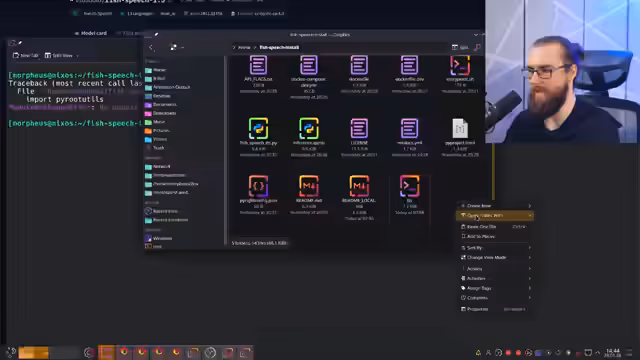 00:12:07Der Streamer stellt das Kernprojekt des Streams vor: das Klonen der eigenen Stimme. Er demonstriert das Fisch Speech 1.5-Modell, ein Text-zu-Speech-System mit Support für zahlreiche Sprachen, darunter auch Deutsch. Nachdem die Installation des Modells geprüft und erfolgreich war, wird dessen Fähigkeit gezeigt, Text in Sprache umzuwandeln, ohne die Performance des Streams zu beeinträchtigen. Dies dient als technologische Grundlage für das spätere Klonen.