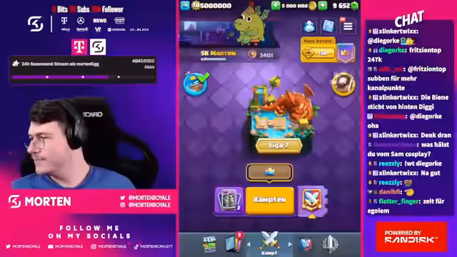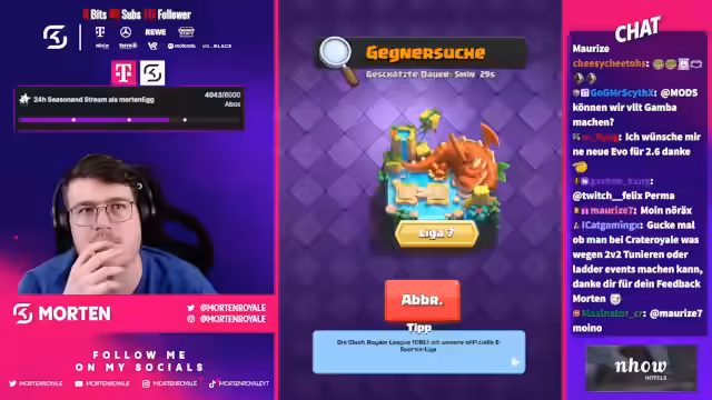 00:18:02Der Stream beginnt mit technischen Schwierigkeiten bei den Kopfhörern. Der Streamer erwähnt sein Gameplay mit dem Bait-Tack und Trimax-Mod. Er beobachtet, dass die Suche nach Spielern mit 300 Medaillen sehr lange dauert. Die Banshee wird als potentielles Gesprächsthema erwähnt und das Thema Koch wird in Bezug auf Schadensverteilung diskutiert. Supercells Entscheidung bezüglich des 1er Cycle wird als dumm bezeichnet und es wird nach Buffs für bestimmte Karten gefragt.