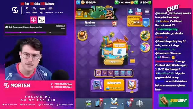 02:08:08Der Streamer bedankt sich bei Supercell für die Verlinkung und spekuliert über eine mögliche Rolle als Caster bei den World Finals, unabhängig von der eigenen Qualifikation. Er betont die Bedeutung des bevorstehenden Spiels und die Notwendigkeit, alles zu geben. Es wird über das gegnerische Deck spekuliert und die potenziellen Gefahren durch bestimmte Karten wie Mutter ex hervorgehoben. Trotz einiger Schwierigkeiten und Herausforderungen wird der Kampfgeist nicht aufgegeben. Der Streamer analysiert das Spielgeschehen und kommentiert die Aktionen des Gegners. Es wird die Bedeutung eines Sieges betont, um die Chance auf die World Finals zu wahren. Abschließend wird die Unterstützung der Zuschauer hervorgehoben und die Vorfreude auf zukünftige Casts zum Ausdruck gebracht.