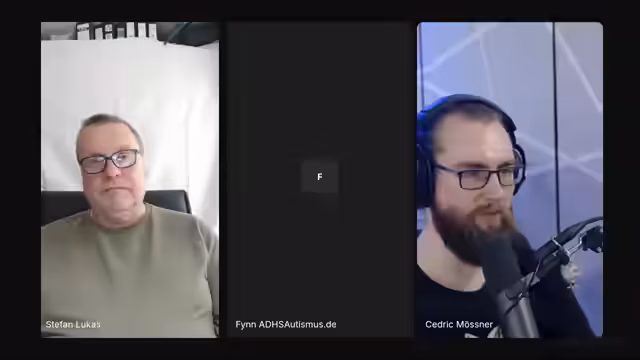 00:01:05Finn beschreibt seine Erfahrungen auf Messen, die für ihn aufgrund seiner Doppeldiagnose ADHS und Autismus besonders anstrengend sind. Er berichtet von Hyperfokus und der Notwendigkeit, gleichzeitig mit vielen Menschen umzugehen, was bei ihm zu extremer Erschöpfung führt. Stefan ergänzt, dass bei der Doppeldiagnose ADHS und Autismus sich die Symptome gegenseitig maskieren können und je nach Tagesform unterschiedliche Eigenschaften dominieren. Sie diskutieren, wie sich Reizüberflutung bei beiden Diagnosen unterscheidet.