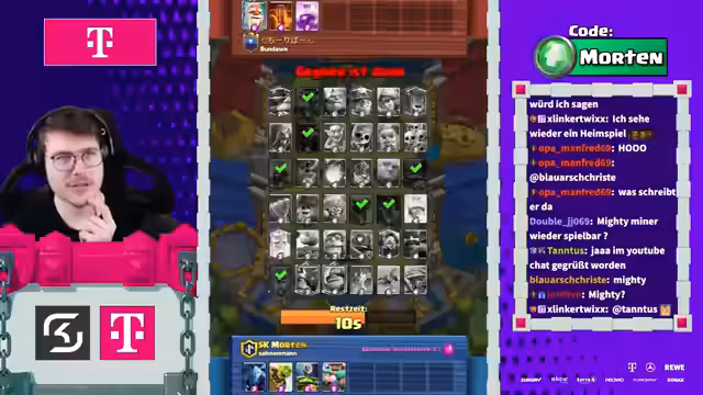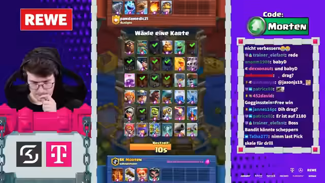 00:01:44Der Stream beginnt mit einer Begrüßung des Chat und dem Einstieg in einen Mega Draft. Der Fokus liegt auf der strategischen Kartenauswahl, wobei der Streamer sich für Ofen entscheidet. Ghost und Lumberjack Lightning werden als starke Karten identifiziert. Der Draft wird als massiv beschrieben, mit dem Ziel, abgezockt zu sein und die Spitze der Liga zu erreichen. Der Chat wird aufgefordert, den Stream zu liken, besonders für die Zuschauer auf YouTube.