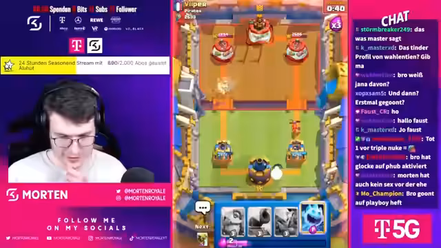 05:10:21Es wird festgestellt, dass der Gegner Mortar Miner Poison spielt, was als nicht geil empfunden wird, aber besser als Pampo. Es wird festgestellt, dass der Gegner gewechselt hat und kein Mortar Miner Poison mehr spielt. Das Baby-Dragon-Gespam wird als AIDS bezeichnet. Es wird analysiert, wie der Gegner spielt und festgestellt, dass man crashouten muss. Die einzige Ausrede für den Gegner ist, dass er eine schlechte Zeit hatte. Der Streamer ist sprachlos und nennt dies eine der Top drei Dinge, die nicht passiert sind. Abschließend wird überlegt, ob man eigentlich links oder galzen soll.