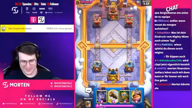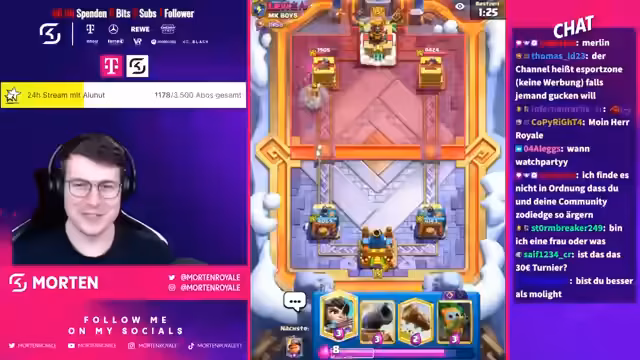 00:32:33Der Streamer interagiert intensiv mit seiner Community, geht auf Kommentare ein und diskutiert verschiedene Themen, von Spielstrategien bis hin zu persönlichen Anekdoten. Er spricht über seine Schlafgewohnheiten und den Austausch mit anderen Streamern. Es wird über Fußballspiele und Stadionbesuche gesprochen, wobei der Streamer seine mangelnde Fußballbegeisterung betont. Auch das Thema Chess wird angeschnitten. Der Streamer reflektiert über seine eigene Spielweise und gesteht ein, dass er manchmal schlecht spielt. Er bedankt sich bei Zuschauern für Bits und Subs und geht auf die Interaktion mit anderen Streamern ein. Es wird über die Regeln in einem anderen Stream und die Frage diskutiert, ob man dort 'action' darf. Der Streamer betont die lustige Dynamik in der Clash Royale Twitch-Bubble. Er spricht über seine Körpergröße und sein Gewicht und geht auf Kommentare von Zuschauern ein. Auch das Thema Urlaub wird angeschnitten, wobei der Streamer überlegt, ob er mal eine Pause vom Spiel nehmen sollte.