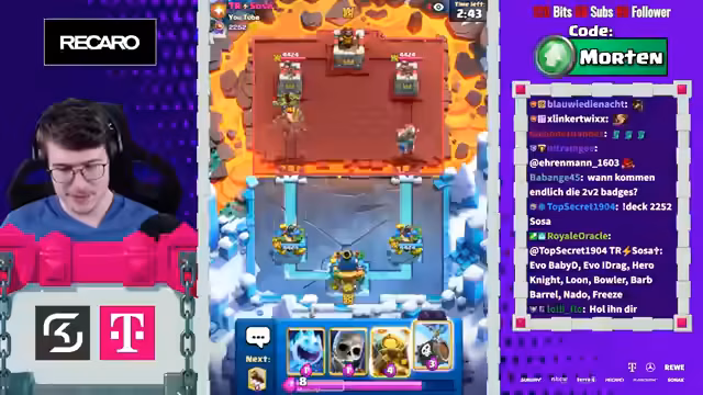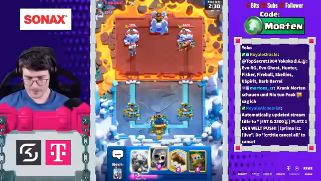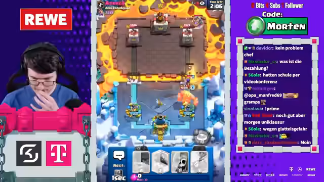 03:37:42Der Streamer äußert sich wiederholt frustriert über die aktuelle Meta von Clash Royale. Er kritisiert speziell Evo-Karten wie Evo Skami und Evo Tesla als übermächtig und bezeichnet sie als 'Psychosen-Karten', die das Spiel unfair machen. Besonders Decks mit Golem oder Evo-Hogs als 'unbesiegbar' und das Spielgefühl als zunehmend psychisch belastend. Er vermisst alte Features wie regelmäßige Global Tournaments und neue Spielmodi, während Supercell derzeit 'nicht viel zu bieten' habe. Trotzdem streamt er weiter, weil täglich über 1.500 Zuschauer zuschauen.