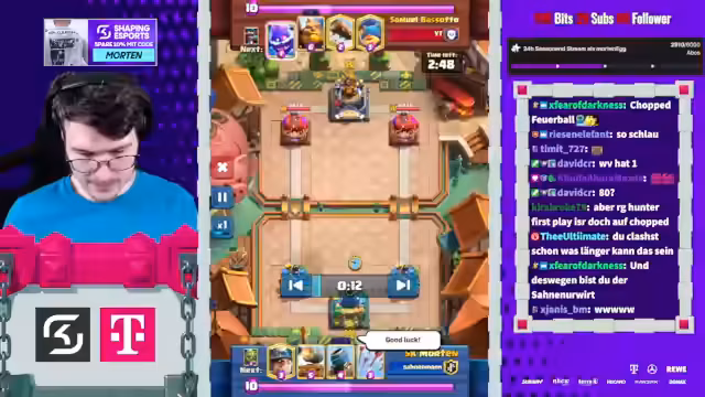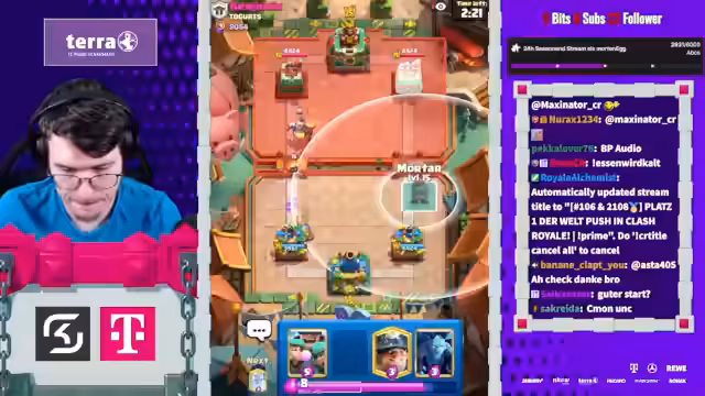 01:58:05Der Streamer gibt bekannt, dass sein Team sich auf Platz 16 der Weltrangliste befindet, obwohl er das Gefühl hat, dass sie eine höhere Platzierung, etwa Platz 2, verdient hätten. Er äußert seine Meinung, dass Clash Royale derzeit 'etwas chopped' ist, was auf eine unausgewogene Spielbalance hindeutet. Er beschreibt eine Spielsituation, in der er gezwungen ist, seine 'Feile' zu committen, um einen Angriff zu tanken, da er sonst sofort verlieren würde. Trotz der Schwierigkeiten und der scheinbar 'schimmeligen' Decks der Gegner, wie eines, das einen Ballon beinhaltet, der seinen Turm nicht alleine zerstören kann, kämpft er weiter. Die knappen Entscheidungen und die Notwendigkeit, präzise zu reagieren, um gegnerische Angriffe abzuwehren, werden hervorgehoben. Er versucht, mehrere gegnerische Einheiten gleichzeitig zu treffen, was jedoch nicht immer gelingt, was zu weiteren Herausforderungen in der Verteidigung führt.