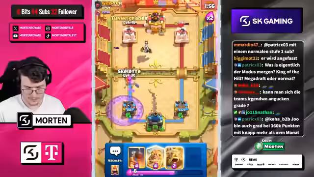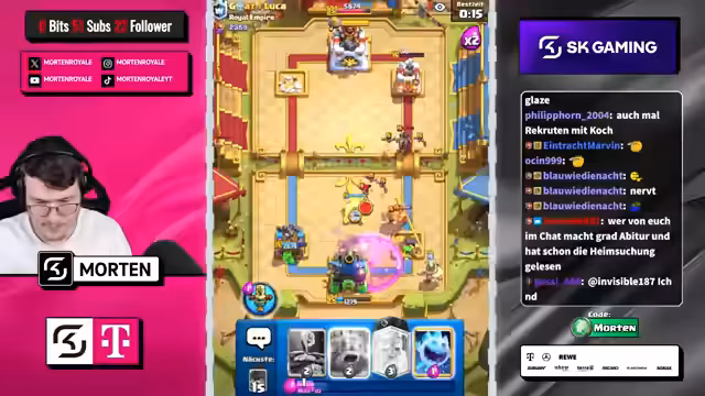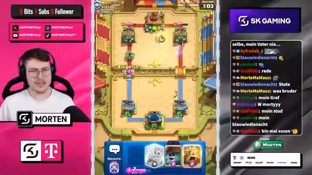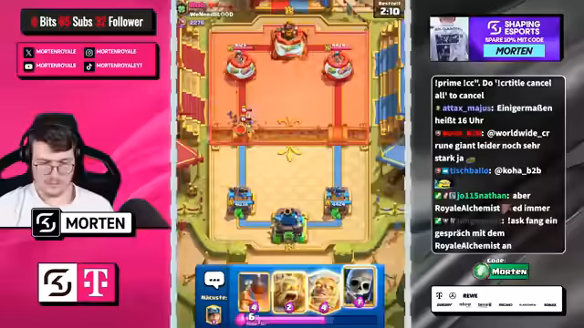 00:00:51Der Stream beginnt mit einer Begrüßung der Zuschauer und einem Überblick über die aktuelle Situation. Der Streamer erwähnt, dass er im Urlaub war und begrüßt seine Community. Er gibt Einblicke in seine Technik, wie den Streamlightstack auf Twitch, und äussert seine Sorge vor Insekten. Es folgen Dankesprüche für Spenden und Likes, sowie eine erste Einschätzung zum Gameplay und der Meta in Clash Royale. Der Streamer ist motiviert und startet in den Tag, um seine Ziele zu verfolgen.