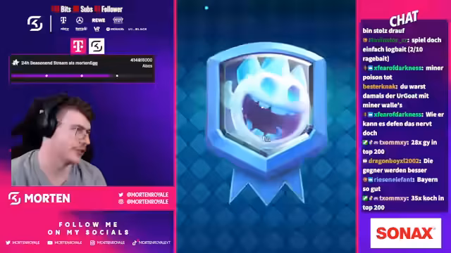 01:38:24Nachdem der Account die 5.000-Trophäen-Marke geknackt hat, beginnt die Öffnung des Battle Pass. Der Streamer betont, dass der Pass auf diesem Server im Vergleich zum normalen Server eine bessere Wertigkeit bietet. Er enthält mehr Gems, Gold und 5-Sterne-Drops, die einen massiven Progress ermöglichen. Das Opening der verschiedenen Kisten, von 1 bis 5 Sterne, wird live gezeigt und kommentiert.