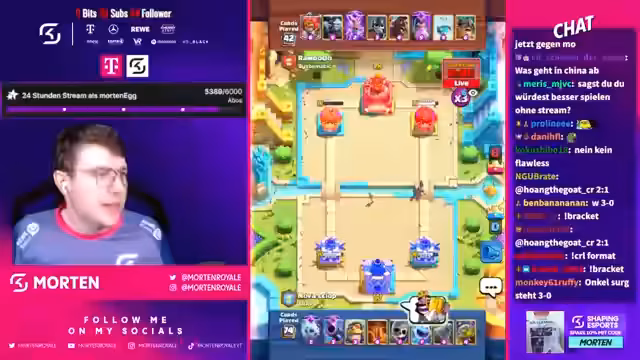 03:47:26Nach einem klaren Sieg gegen einen Gegner namens Faust ist die Qualifikation für die Top 32 offiziell gesichert. Der Streamer atmet auf, schlägt den qualifizierten Spielern Glück für die nächste Runde vor und kündigt an, die Finalrunden des "Clash Royale League" am darauffolgenden Tag zu casten. Er bedankt sich bei seinem Publikum für die Unterstützung und schließt den Stream mit positiver Stimmung.