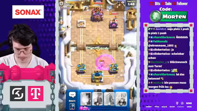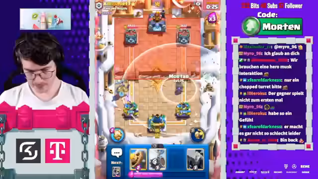 00:10:13Eine Musketier-Fähigkeit wird gezündet, die sich als äußerst effektiv erweist und als 'balanced' und 'Goated Ability' beschrieben wird, da sie sogar einen Phönix neutralisieren kann. Der Streamer ist begeistert von der Stärke dieser Fähigkeit und bittet Mods oder VIPs, das Spiel zu markieren, da es ein 'geiles Game' mit 'Hero Mask, Evo Ritter Action' war. Er erwähnt, dass er den 'Free-Evo' noch nicht besitzt und spielt weiterhin mit den neuen Helden, um deren Potenzial zu erkunden. Die Diskussion über die Effektivität von Hero Knight gegen bestimmte Decks wie X-Bogen beginnt, wobei der Streamer die Umleitungsfähigkeit des Ritters hervorhebt.