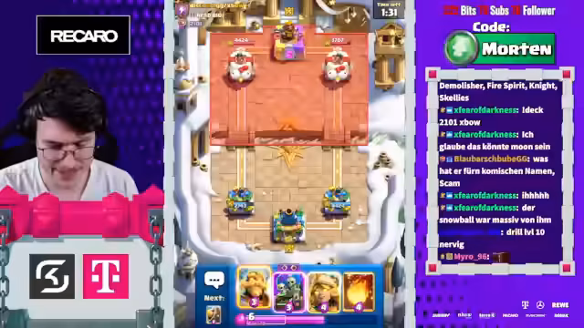 00:26:54Der Streamer demonstriert eine dominante Spielweise, indem er Fähigkeiten wie ein 'Mann' spammt, um Schilde zu aktivieren und Druck auf den Gegner auszuüben. Er ist überrascht von der Effektivität seiner Strategie und fragt sich, was mit Clash Royale passiert ist, da es sich 'wirklich crazy' anfühlt. Er teilt sein aktuelles Ranking der neuen Helden mit: Must, Mini-Pekka, Giant, Knight, und betont, dass er Knight von Anfang an als den schwächsten der neuen Helden eingeschätzt hat. Trotzdem findet er die Interaktionen und Kombis mit dem Deck ansprechend und sieht Potenzial in der 'Mask Ritter'-Kombination.