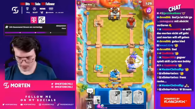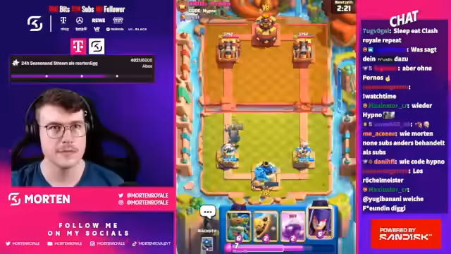 03:09:15Es wird die Frage nach dem aktuellen Cycle beantwortet, wobei zwischen dem Essens-Cycle und dem Clash Royale-Cycle unterschieden wird. Es wird sich über einen neuen Sub und neue Follows gefreut. Es wird die Aktivität des Chats thematisiert und gefragt, ob die Zuschauer "schimmeln". Es wird die Frage beantwortet, welche GB (vermutlich Giant Balloon) Decks am besten gespielt werden. Es werden verschiedene Kartenkombinationen wie Evo Hexe, Evo Babydrink und Golem diskutiert. Es wird über den Spielverlauf gesprochen und die Bedeutung des Schutzes der eigenen Einheiten hervorgehoben. Es wird die Musik im Stream gelobt und sich für die Unterstützung bedankt. Es wird darauf hingewiesen, dass Goblin Giant gespielt wird.