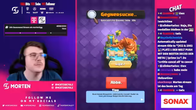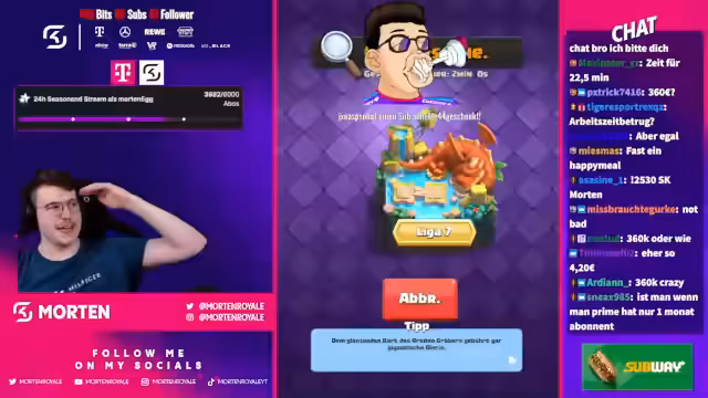 00:24:06Der Stream beginnt mit lockeren Bemerkungen und einem kurzen Dialog. Streamer erwähnt, dass er gerade an Clash Royale spielt und sich auf Platz 1 der Welt befindet. Es werden humorvolle Bemerkungen über ein vermeintliches AMG-Auto gemacht. Der Streamer begrüßt seine Chat-User, insbesondere David, und kündigt an, dass alles Wichtige angepinnt ist. Ein technisches Problem mit einem Spiel, möglicherweise Clash Royale, wird kurz angesprochen. Die Stimmung ist entspannt und der Fokus liegt auf dem Gameplay.