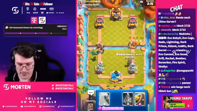 01:33:00Der Stream startet mit der Frage, ob das verwendete Deck Pekaloon ist. Es gibt eine knappe Situation, in der eine Maschine entscheidend einen Ballon tötet und somit den Sieg sichert. Die Freude über diese glückliche Wendung ist groß. Es wird überlegt, was Kyrie im MK spielt und welche Varianten es gibt. Ein Gegner wird als abgezockt bezeichnet. Später im Spielverlauf tauchen Mauerbrecher auf, die als nervig empfunden werden. Der Streamer sieht sich mit Evo Beryl konfrontiert und sucht nach Möglichkeiten, den Schaden zu minimieren. Es wird die OP-Situation des Geistesklangs thematisiert und um Unterstützung gebeten. Die anfänglichen Phasen des Streams sind geprägt von spannenden Spielmomenten und der Auseinandersetzung mit verschiedenen Gegnern und Strategien, wobei Glück und Können eng beieinander liegen.