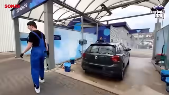00:30:55Nachdem die Felgen vorbereitet wurden, wird nun der restliche Lack des Fahrzeugs gereinigt. Dafür kommt das Sonax Extreme Rich Foam Shampoo zum Einsatz, das großflächig aufgeschäumt wird. Die Prozedur wird von den Teilnehmern mit einem speziellen Schwamm sorgfältig ausgeführt, von oben nach unten. Anschließend wird der Lackschicht mit einem Mikrofasertuch gründlich getrocknet. Der Streamer dokumentiert das Ergebnis, das einen deutlichen Unterschied zum Zustand vor der Reinigung zeigt, und lobt dabei den Einsatz der beiden, die das Fahrzeug bearbeiten.