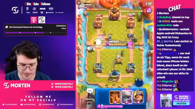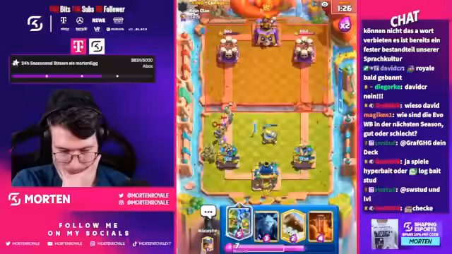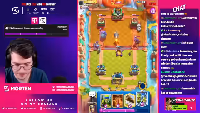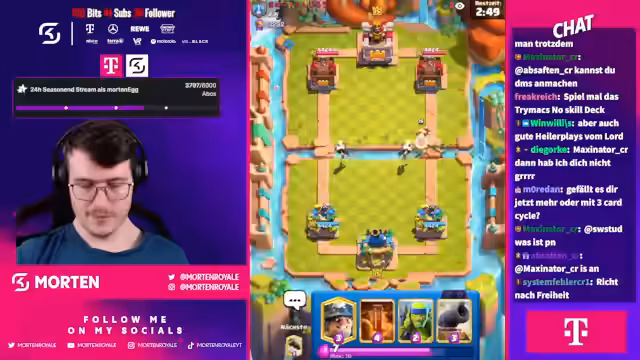 00:00:01Der Stream beginnt mit Begrüßungen des Chats. Der Streamer berichtet von einem anstrengenden Tag und äußert massive Frustration über das aktuelle Spielgeschehen in Clash Royale. Er beschreibt das Spiel als "Aids" und "verrückt", kritisiert Meta-Decks wie Evo-Skeletons und den Baby Dragon, der ihn besonders nerve. Seine Unzufriedenheit ist so groß, dass er humorvolle, aber ernst gemeinte Vorschläge wie eine staatliche Förderung für Clash Royale-Spieler in der Rente äußert, da das Spiel seine Gesundheit ruiniere.