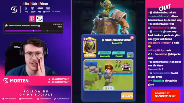 00:53:08Im Kern des Streams steht das Gameplay auf dem Weg zu 3.700 Trophäen. Der Streamer analysiert verschiedene Matchups und Decks intensiv. Er beschreibt den Einsatz von Karten wie dem Golem, Graveyard und Evo-Kanone, wobei er deren Stärken und Schwächen im Detail beleuchtet. Er diskutiert spezifische Spiele, Fehler und den Druck, die Liga zu halten. Die Meta wird als "Aids" und "verrückt" bezeichnet, und er kämpft mit Karten, die er als "unspielbar" oder "broken" empfindet, wie dem Evo Baby Dragon.