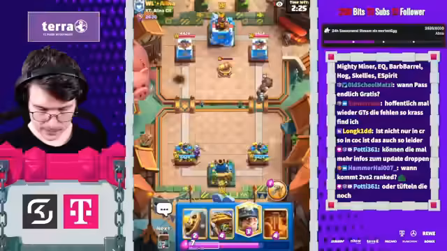 00:01:02Der Streamer beginnt den Stream mit der Begrüßung des Chats und äußert sofort Frustration über das Gameplay in Clash Royale. Er beklagt sich über schlechte Verteidigung und den Verlust von Elixier, insbesondere gegen den Ghost. Er erwähnt, dass einige Zuschauer sich über ein vermeintliches Level 16 Update gefreut haben, was jedoch nicht der Fall ist. Die ersten Spiele verlaufen enttäuschend, mit drei Niederlagen in Folge, was zu einer kurzen Werbepause führt. Er diskutiert auch über die besten One-Trick-Spieler in Clash Royale und äußert seine Meinung zu verschiedenen Karten und Strategien.
