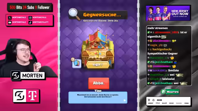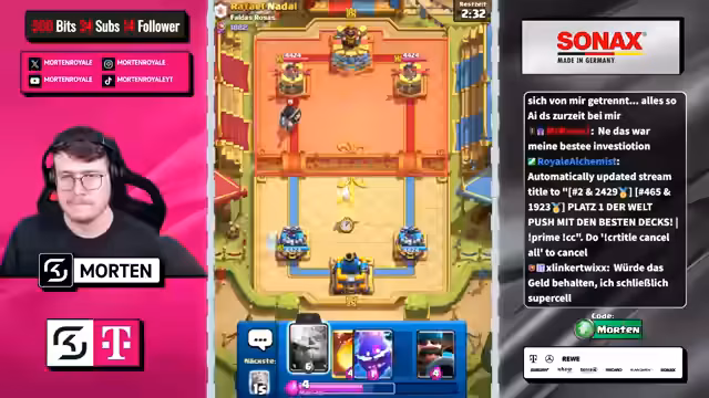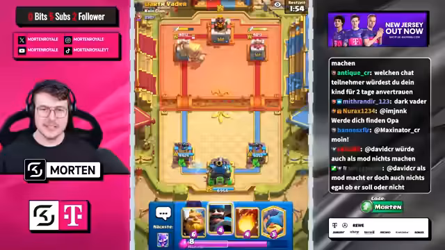 00:00:46Der Stream beginnt mit der Begrüßung der Zuschauer wie Ruso, Jeff und Twikes. Der Streamer erwähnt die frühe Startzeit der Elite und unterhält sich über diverse Karten und Decks wie Giant Ability, Hunter und Lava-Trix. Es wird auch eine Diskussion darüber geführt, ob Streaming oder eine Arbeit im Tanke mehr erfordert. Der Fokus liegt auf dem Gameplay und den aktuellen Karten im Clash Royale Meta.