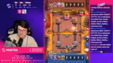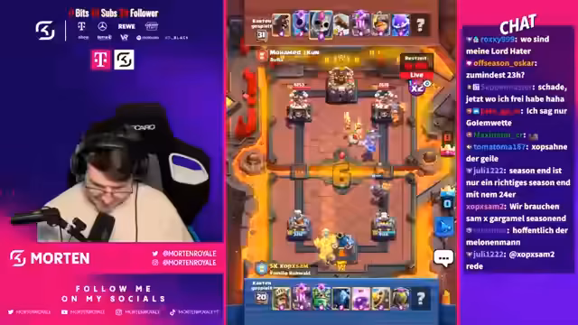 00:30:06Zu Beginn des Streams treten technische Probleme auf, da der Desktop-Audio komisch klingt und der Streamer seine Audioeinstellungen überprüfen muss. Die ersten Spielzüge konzentrieren sich auf Clash of Clans, speziell auf die Evo-Ofen-Karte, die als sehr stark und strategisch wichtig erachtet wird. Eine "Empress"-Karte wird als gefährlich eingestuft, wenn sie den Turm angreift, und Kombinationen wie "Empress plus Boss Bandit plus Triple Small Spell" als übermächtig (broken) beschrieben, was auf die hohe Priorität hindeutet, die diese Karten im Spiel haben.