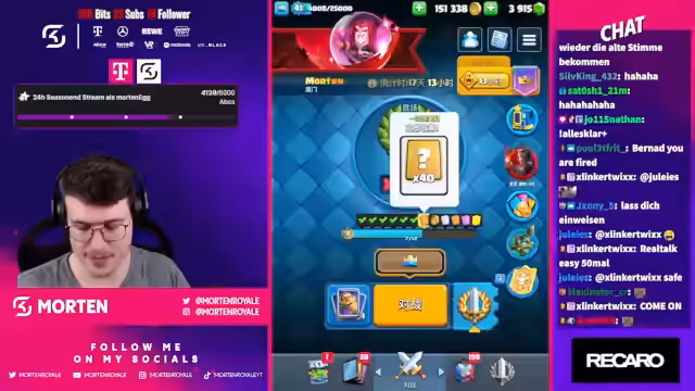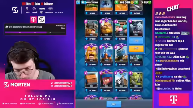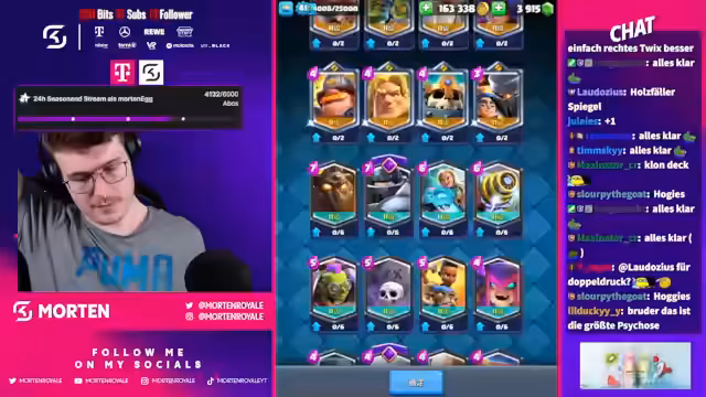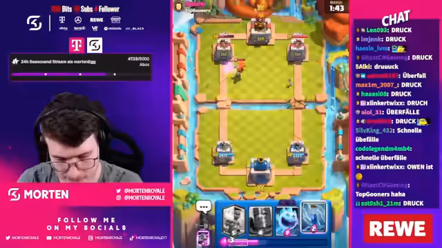01:55:27Das Stream-Duo steht kurz vor dem Ziel, scheitert jedoch mehrmals an einer stark gegnerischen 'Mutterhexe', die für Frustration sorgt. Trotz Rückschlägen geben die beiden nicht auf und richten ihren Fokus auf ein letztes, starkes Deck, ein Mega-Ritter-Ram-Rider-Deck. Nach anfänglichen Schwierigkeiten bei der Zusammenstellung des Decks und der Auswahl der Evos gelingt es dem Streamer in einem dramatischen Finale, den entscheidenden Sieg zu erringen und die Herausforderung der zwölf Siege erfolgreich abzuschließen.