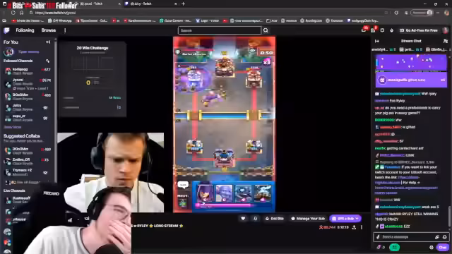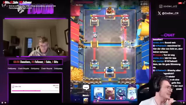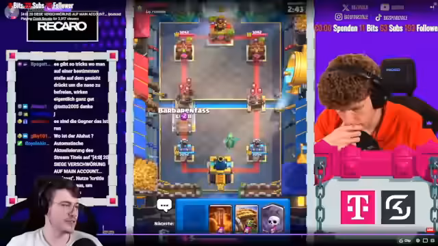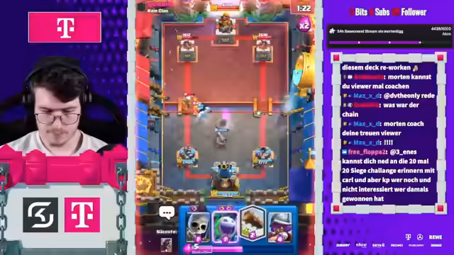 00:19:26Der Stream beginnt mit der Ankündigung der 20-Siege Challenge, einem Versuch, einen Weltrekord aufzustellen. Der Streamer stellt seine Strategie vor, die hauptsächlich auf defensivem Spiel mit der Evo Kanone und dem Icegeist basiert, um starken Decks wie Chopped Angs oder Golem standzuhalten. Er betont, wie wichtig es ist, passiv zu spielen und Karten wie den Hawk und Evo Skellies strategisch im Cycle einzusetzen, um ein schnelles Durchkommen des Gegners zu verhindern.