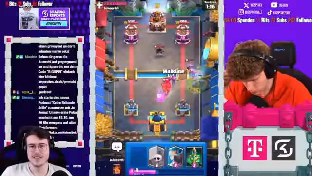 01:37:31Unmittelbar nach seiner eigenen Challenge schaltet der Streamer zu einer Watch Party für einen anderen Streamer mit dem Namen Big Spin um. Er beobachtet dessen Spiele und kommentiert deren Spielstil und die Gegner, die Big Spin bekommt. Er kritisiert das Matchmaking von Big Spin scharf, da er der Meinung ist, dass dieser gegen deutlich schwächere Gegner antritt, was die Leistung der 20-Siege Challenge infrage stellt.