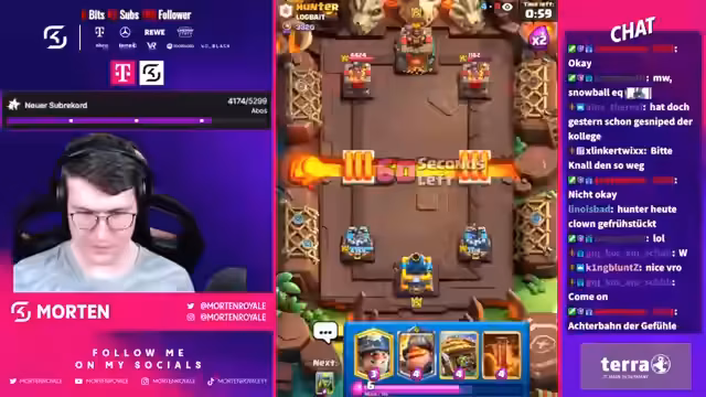01:55:42Zum Ende des Streams zeigt Mortenroyale noch einige weitere Spiele von Clash Royale. Er gewinnt und verliert einige Matches und äußert seine Gedanken über die aktuelle Meta und die Balance Changes. Zum Schluss bedankt er sich bei seiner Community für den Support und erwähnt anstehende Events oder Streams in der Zukunft.