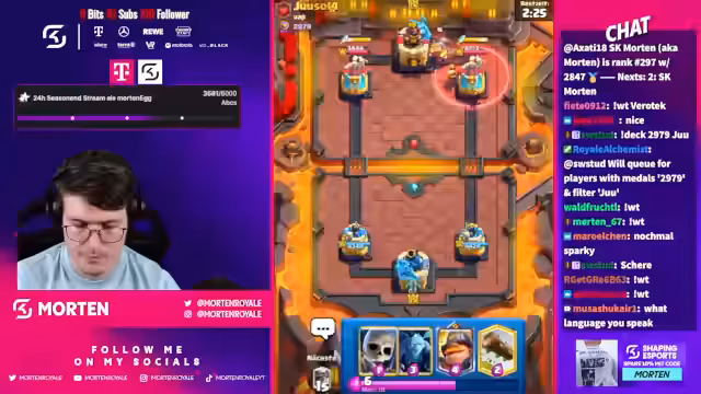 00:32:50Ein wesentlicher Teil des Streams besteht in der direkten Interaktion mit der Community. Spieler werden namentlich erwähnt und bewertet. Auch Diskussionen über aktuelle Spielmechaniken und Decks finden statt. So wird z.B. die Meta besprochen und es werden Decks wie Aids und Monk als sehr stark ("OP") eingestuft. Der Chat wird genutzt, um Spieler zu kommentieren und die eigene Gameplay-Performance zu analysieren und zu teilen.