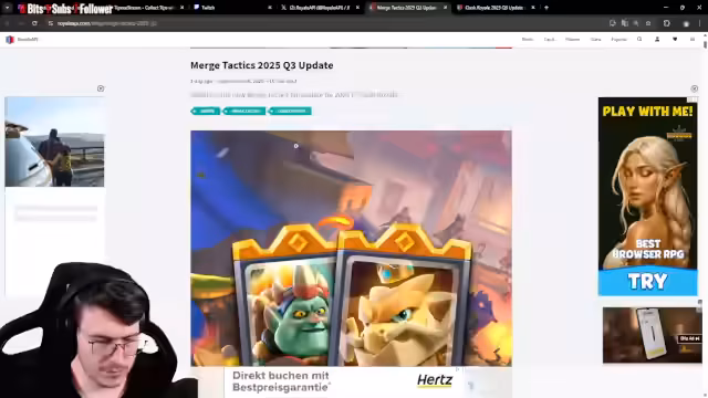 02:09:31Nach dem Start des Updates betritt der Streamer das Spiel und untersucht die Neuerungen direkt. Er stellt fest, dass der Shop kaum neue Angebote enthält, die Champions wurden jedoch gefixt. Er öffnet die neuen Lucky Chests und sucht erfolglos nach einem Badge im Trophy Road. Anschließend navigiert er zu den neuen Match Tactics, die er sich genauer ansieht. Er ist überrascht, dass man die Taktiken nicht spielen, sondern nur noch ansehen kann. Er testet die neuen Taktiken wie Skelly Dragons und Doppel-Magier und kommt zu dem Schluss, dass einige Kombinationen wie Magier-Baby-Dragon extrem "broken" und "overpowered" wirken.