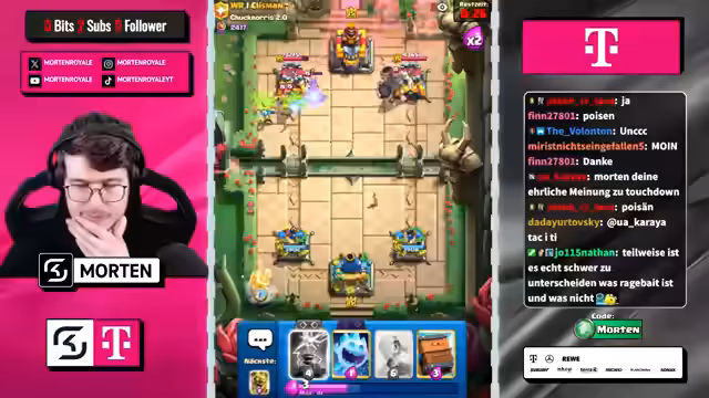 00:02:37Im Verlauf der Streams werden verschiedene Gameplay-Situationen analysiert und die aktuelle Meta von Clash Royale diskutiert. Es werden Karten wie Magic Archer, evo Hog Rider und Golem kritisch betrachtet, wobei ihre Stärken und Schwächen im Detail erörtert werden. Besonders die Kombination aus Hogs und Magic Archer wird als stark und nervig empfunden. Der Streamer betont, dass die Meta zwar ausgeglichen, aber bestimmte Decks wie Wizard sehr dominant sind.