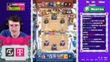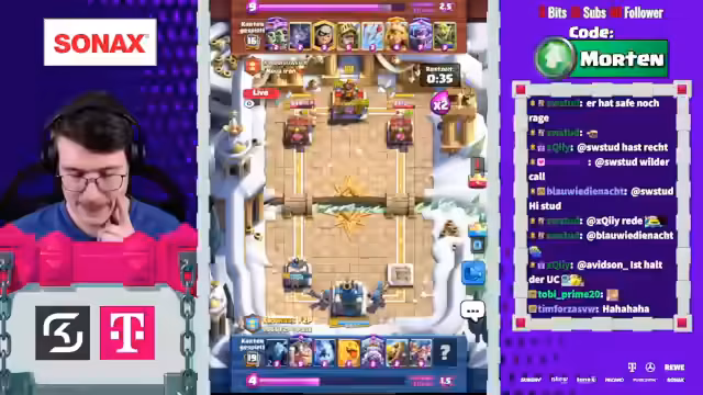00:28:20Während der ersten Spiele auf dem Weg zu 11.500 Trophäen wird deutlich, dass das Deck spezielle Antworten auf verschiedene Meta-Decks erfordert. So wird besprochen, wie gegen weit verbreitete Karten wie Golem oder Riese vorzugehen ist. Wichtig ist hierbei, nicht zu früh zu committen und die Evolution der Royal Hogs erst dann zu spielen, wenn sie maximale Wirkung zeigt. Ein Großteil der Analyse widmet sich der Frage, wie man Gegner mit großem Flächenschaden (Big Spells) kontert und wie wichtig der Heilgeist in Kombination mit den Musketierinnen ist. Es wird demonstriert, dass geduldiges Spielen und das gezielte Blocken von Lanes den Erfolg sichern. Trymacs hat anfangs Probleme, die defensive Grundhaltung des Decks zu verstehen, lernt aber schnell, dass das Überleben der Türme Priorität hat und der Schaden durch konstantes Pressing im späten Spielverlauf oder durch Überraschungsangriffe mit den Royal Hogs erzielt wird. Die Kommunikation zwischen dem Coach und Trymacs fokussiert sich auf das korrekte Timing und das Lesen des gegnerischen Decks.