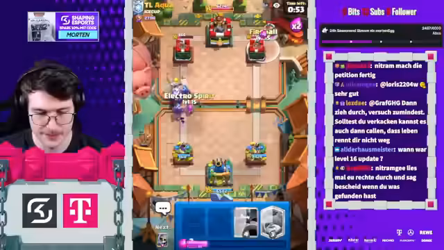 00:30:35Im weiteren Verlauf wurde über die Spielmeta diskutiert, insbesondere über den Rocket Cycle, den der Streamer als sehr stark ansieht. Er analysierte mögliche Kombinationen wie Ritter mit LG und die Rolle des Royal Giants. Dabei wurde kritisiert, dass es schwierig ist, gegen Decks zu bestehen, wenn ein Spieler nur wenige Karten einsetzt und der Rest nicht ausgereift ist. Der Streamer zweifelte an der Glaubwürdigkeit der Leaks und befürchtete einen Einbruch seiner Leistung.