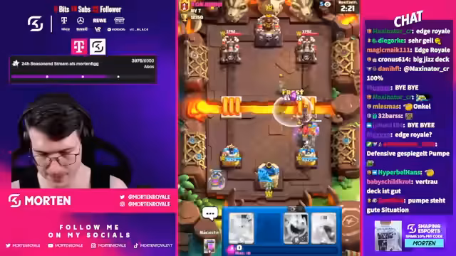 02:10:38Es steht nur noch ein Spiel bevor, möglicherweise das entscheidende, und das nächste Deck wird kopiert. Der Streamer äußert sich besorgt über die Qualität der Decks und befürchtet, dass er selbst bei perfekter Verteidigung verlieren könnte. Einige der Decks, die ihm von der Community gegeben werden, sind extrem unkonventionell und scheinen keine klare Gewinnstrategie zu haben. Trotzdem gibt er nicht auf und versucht, das Beste aus jeder Situation zu machen. Er kommentiert humorvoll die Taktiken seiner Gegner und die Schwierigkeiten, die ihm die Decks bereiten. Trotz der Herausforderungen bleibt er optimistisch und kämpft um jeden einzelnen Sieg, um das Ziel von 15.000 Trophäen zu erreichen.