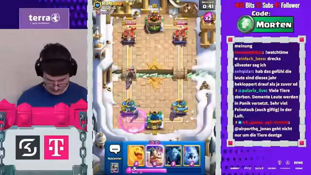 00:07:48Das Stream-Vergnügen wird durch mehrere schwierige Spiele getrübt. Der Streamer kämpft mit einem unfairen Matchup gegen einen Gegner, der mit Nader und Vine spielt, was seiner Meinung nach keinen Sinn ergibt. Er fühlt sich im Spiel benachteiligt und schreibt die Niederlage der Meta und spezifisch den als 'broken' empfundenen Karten wie dem Mini-Pekka zu. Er frisch seine Frustration über die unausgewogene Spielbalance aus.