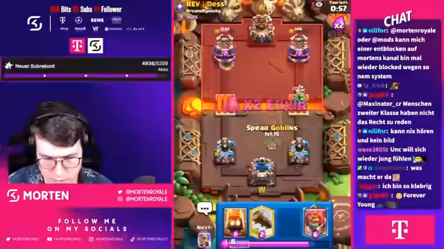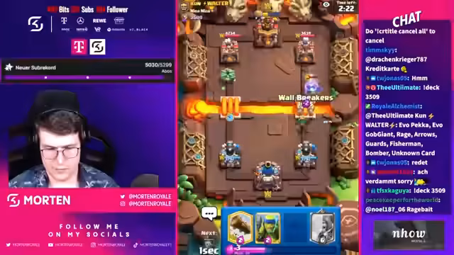 08:03:30Der Streamer kritisiert die aktuelle Meta von Clash Royale, besonders das Wheel-Talk-Deck, das er als überpowered empfindet. Er vermutet, dass Gegner ihn absichtlich snipen und nur gegen dieses Deck spielen. Er äußert seinen Unmut über die Monotonie der Matches und die eingeschränkten strategischen Optionen.