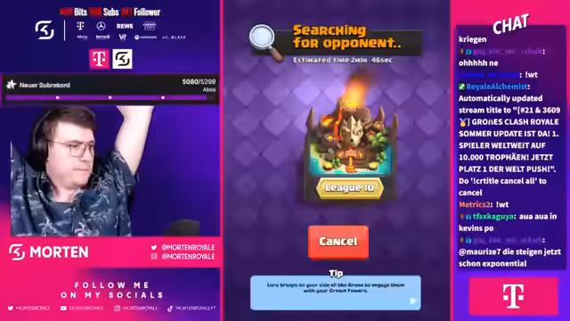 00:14:44Der Streamer erleidet während des Streams mehrere Niederlagen in Clash Royale, was zu Frust und Unmut führt. Er beschreibt das Gefühl, ziellos durch die Straßen zu laufen und nicht schlafen zu können, da er ständig an das Spiel denkt. Nach langem Warten findet er endlich ein Gegner, verliert aber dennoch knapp, was seinen Zorn steigert.