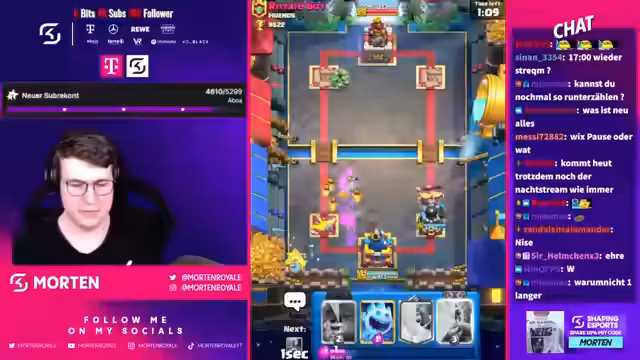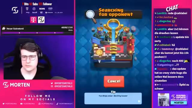 04:07:14Eine zentrale Herausforderung im Stream ist die lange Suchzeit nach Gegnern, die oft mehrere Minuten dauert, besonders im hohen Trophäenbereich. Eine einzelne Niederlage fühlt sich aufgrund dieser langen Wartezeit besonders verheerend an. Der Streamer spricht auch über das hohe Skill-Level der Gegner und die Schwierigkeit, bestimmte Decks wie X-Bogen mit Dagger erfolgreich zu countern.