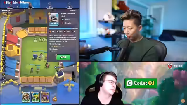 00:09:28Zu Beginn des Streams wird der neue 'Merge Tactics' Modus vorgestellt, der stark an das Spiel 'Clash Mini' erinnert und als strategischer 'TFT-ähnlicher' Modus beschrieben wird. Der Streamer äußert große Vorfreude und zeigt das Gameplay-Video von OJ, das er als sehr gut zusammengefasst lobt. Es werden erste Synergien und Mechaniken wie das Zusammenfügen von Truppeneinheiten ('Merge'), um deren Stufe zu erhöhen, und die damit verbundene Stärkung der Kartenvielfalt erläutert. Besonders der 'Royal Ghost' wird als potenziell extrem 'OP' (overpowered) identifiziert, da er in Clash Mini bereits dominant war.