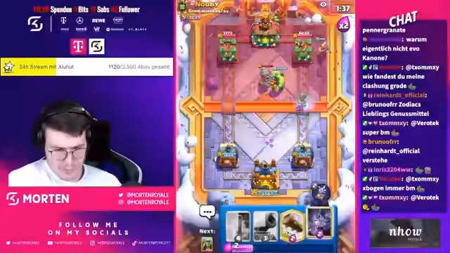 05:10:00Mortenroyale spielt erneut gegen Faust und hadert mit dessen E-Golem-Deck, gegen das er in letzter Zeit Schwierigkeiten hat, obwohl sein Deck normalerweise gut dagegen sein sollte. Er analysiert, warum er gegen diese spezielle E-Golem-Variante verliert und sucht nach Strategien, um die Fickmaschine des Gegners zu kontrollieren. Er kündigt einen gemeinsamen Stream mit Faust, LukasCR und EOP-SAM für morgen an. Er diskutiert die Effektivität von Pfeilen und betont, dass man manchmal sehr aggressiv spielen muss, besonders kurz vor Double Elixir. Er freut sich über ein schönes Abschlussspiel und hofft, morgen im Season-Endstream wieder Gas geben zu können. Er bedankt sich für den Support und gibt bekannt, dass er wahrscheinlich erst am Nachmittag streamen wird.