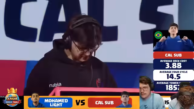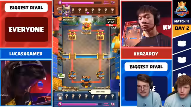 00:36:47Im zweiten Match trifft Lukas auf Ego. Lukas dominiert mit seinem Evo-Skeletons-Deck und gewinnt das erste Spiel deutlich. Ego hat offenbar Probleme mit Verteidigung und gibt Lukas zu viele Punkte. Das Match zeigt die Stärke von Lukas' vielseitigem Gameplay.