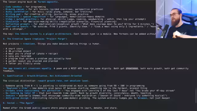 02:13:44Die Kernarchitektur der geplanten Lern-App wird detailliert beschrieben. Es wird ein 'modularer Plugin-Ansatz' verfolgt, der eine flexible Erweiterung durch neue Lernformate ohne Kernänderungen ermöglicht. Wichtige Features wie 'Offline-Lesson-Caching' und 'The Atlas', eine Art Fähigkeitsbaum mit Nebelkrieg-Mechanik, werden skizziert. Ziel ist es, dass Lektionen direkt im App-Code ausgeführt und interaktiv gelernt werden können.