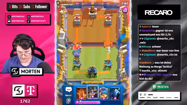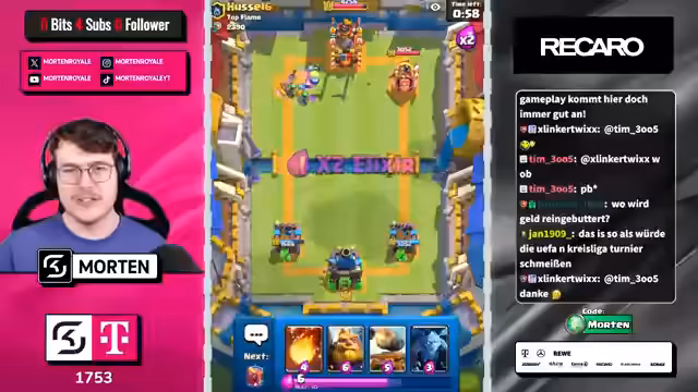 00:11:56Der Streamer teilt mit, dass das Hauptziel der Push auf den ersten Platz ist, insbesondere um die 100.000 James-Trophäen zu erreichen. Er äußert seine Unzufriedenheit mit den neuen Spielmechaniken wie Crystals und überkomplizierten Decks. Er spricht auch über die Wichtigkeit von E-Sport-Events und die Hoffnung auf bessere Unterstützung seitens von Supercell im E-Sport-Bereich.