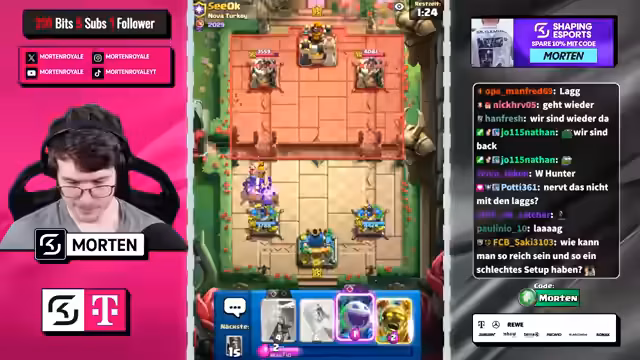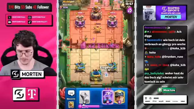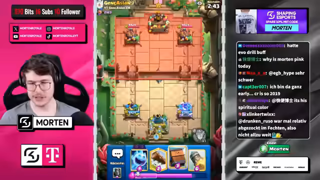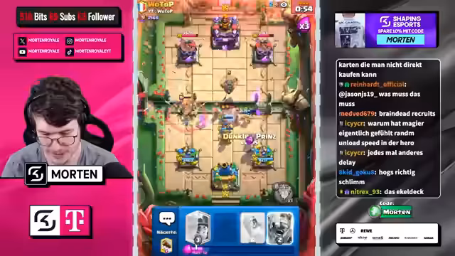 00:01:09Der Stream beginnt mit der Begrüßung des Chat und einer Klärung des aktuellen Spielplans. Zunächst soll ein normales Clash Royale-Spiel gespielt werden. Später ist ein Spieldurchgang des Touchdown-Modus geplant, allerdings zeigt sich der Streamer skeptisch gegenüber Touchdown, da er ihn als zu geisteskranke und anstrengend empfindet, und ist sich noch nicht sicher, ob er diese Runden noch spielen wird. Das Overlay wurde angepasst und der Streamer bittet die Zuschauer, auf YouTube zu liken, was ihm besonders wichtig ist.