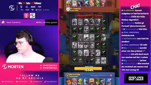 00:06:04Der Stream beginnt mit der Diskussion über die Kartenauswahl für das Spiel. Morten ents sich gegen Reskits und stattdessen für Goblin Barrel, bevor er sich letztendlich für Mortar entscheidet, da dieser tankier gegen EQ ist. Er erklärt auch, warum er Archers anstelle von Firespit wählt und erwähnt die Wichtigkeit der Kartenwahl im Draft. Er zeigt sich unsicher bei einigen Entscheidungen und diskutiert verschiedene Strategien mit dem Chat.