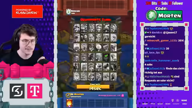03:48:56Der Streamer setzt den Push auf Platz 1 fort und wählt spezifische Karten wie Penny Mecca, um gegen die Müllkarten des Gegners vorzugehen. Er analysiert die Möglichkeiten des Gegners, Hexe oder andere Karten zu picken, und zeigt strategisches Vorausdenken auf, indem er Miner als Win-Condition erwägt und Spiegelkarten wie Minions im Blick behält, um den Elixir-Vorsprung zu nutzen.