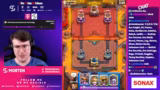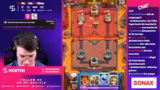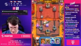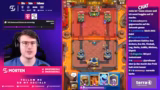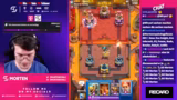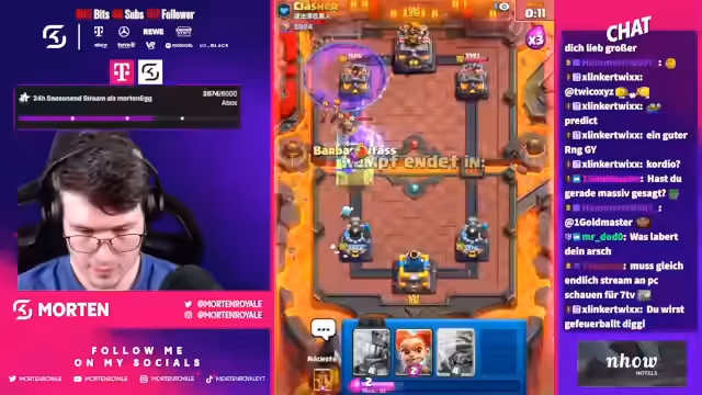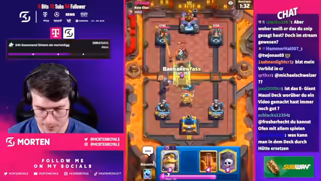 04:30:06Ein gegnerischer Gold-Knight hätte massiv angreifen können, tut es aber nicht. Das Spiel intensiviert sich, als der Gegner offensichtlich ein Poison-Spell spielen muss. Der Streamer spielt mit Evo-Lumberjack, Evo-Furnace und Rage extrem abgehackt und muss vorsichtig sein, selbst angegriffen zu werden. Das Matchup als ganzes wird als sehr spannend und umkämpft beschrieben, bei dem jede Entscheidung über Sieg oder Niederlage entscheiden kann.
