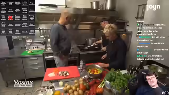 00:17:44Streamer erlebt schwere technische Probleme im Restaurant: kein Handyempfang, kein Strom, defekte Telefone. Frank Rosin untersucht dann die Küche und Lagerhaltung und findet extrem praktizierte Vakuumierung und Einfrieren von vorgekochten Speisen. Kritik an der Methode, da Qualität leidet und Lebensmittel mehrfach aufgewärmt werden. Andeutung, dass dies zu schimmligem Geschmack führen könne.