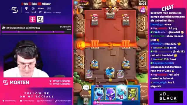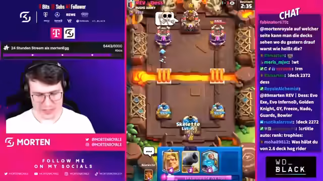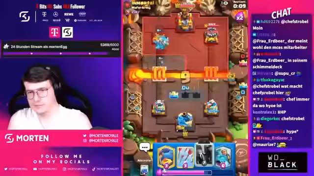 03:43:12Der Streamer berichtet über ein erfolgreiches Spiel gegen den Evo-Eisgeist, bei dem er mehr Schaden gemacht hat als der Gegner. Er analysiert die Stärken von Low Evo Archers und drei Pumpen im Deck. Es folgt die Herausforderung gegen den Evo-Magier, der härter treffen wird. Der Ice Golem wird als stark eingestuft und der Streamer diskutiert über die Verwendung des DFB-Mixbogens und Schwierigkeiten, durchzukommen. Die Kommunikation mit dem Chat ist entscheidend für die Entscheidungsfindung.